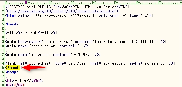 貼りつける場所は、ソースコードの</head>の直後です。